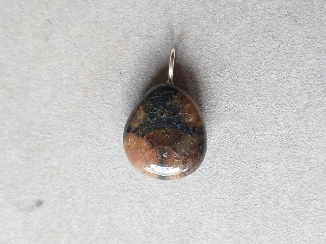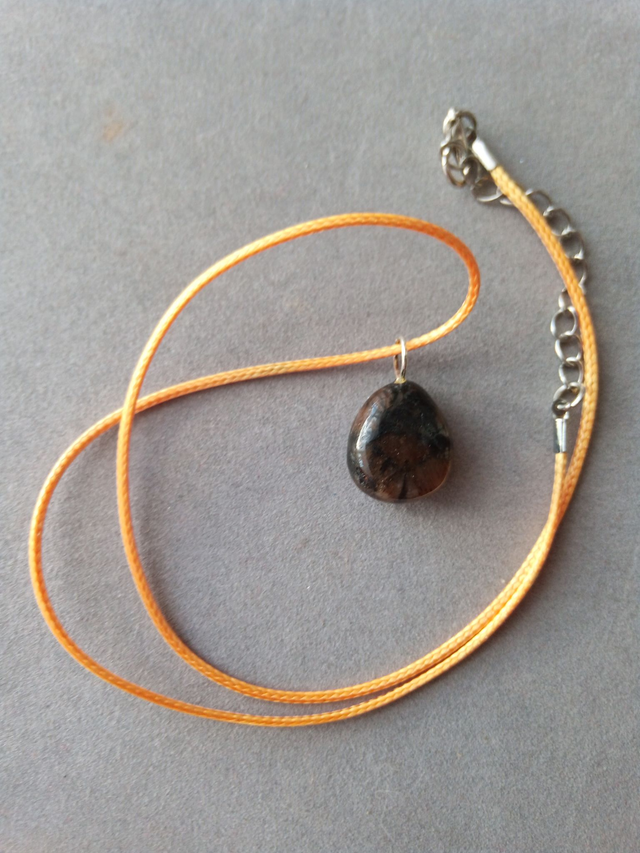 Pendentif en Chiastolite véritable (brune) 1.7cm environ fourni avec un cordon orangé