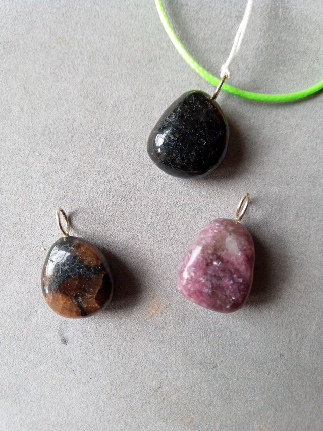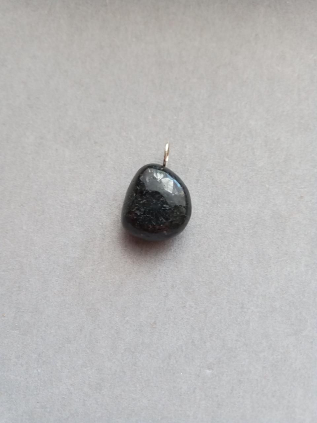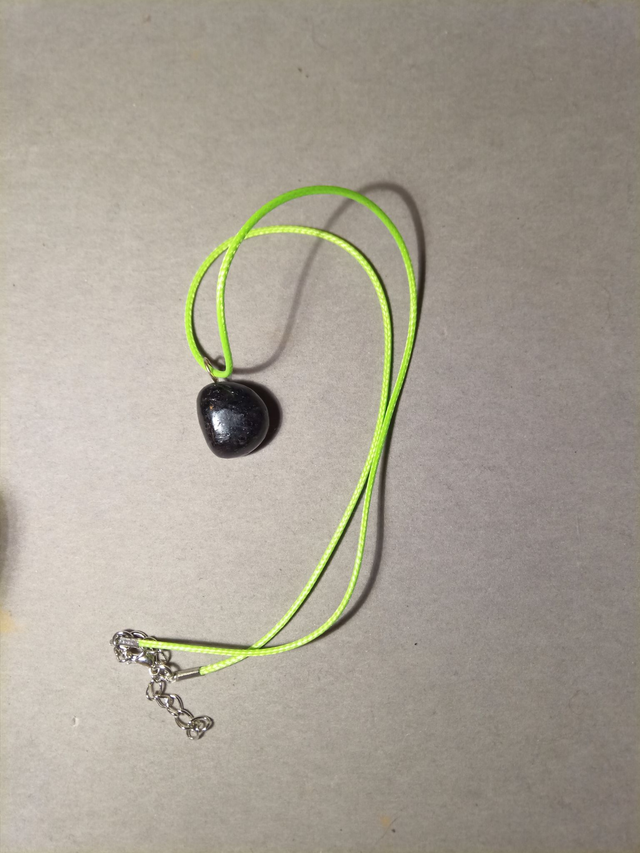 Pendentif en Nuumite véritable (noire) AA 2cm environ fourni avec un cordon vert fluo