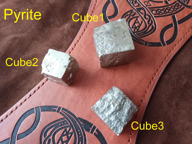 Pyrite en cube, cristaux véritables, 3 pièces différentes