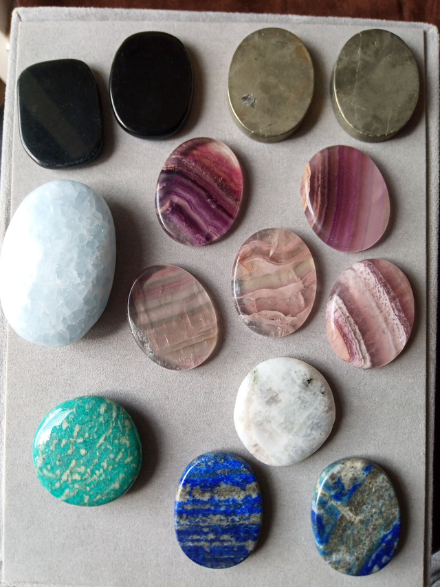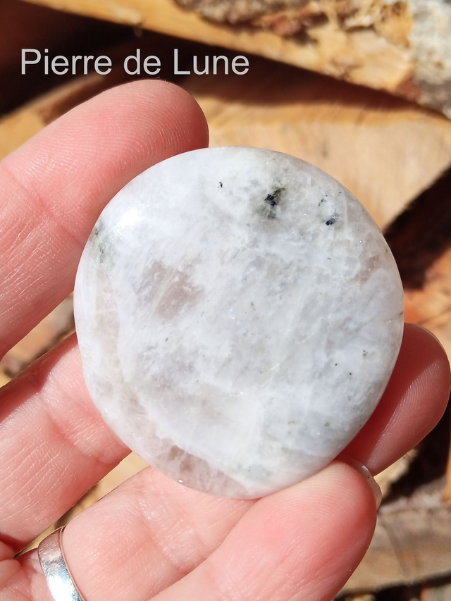 Ronde 4.5 à 5cm : Amazonite 30-35g, Pierre de lune 25g